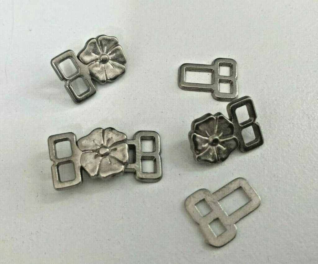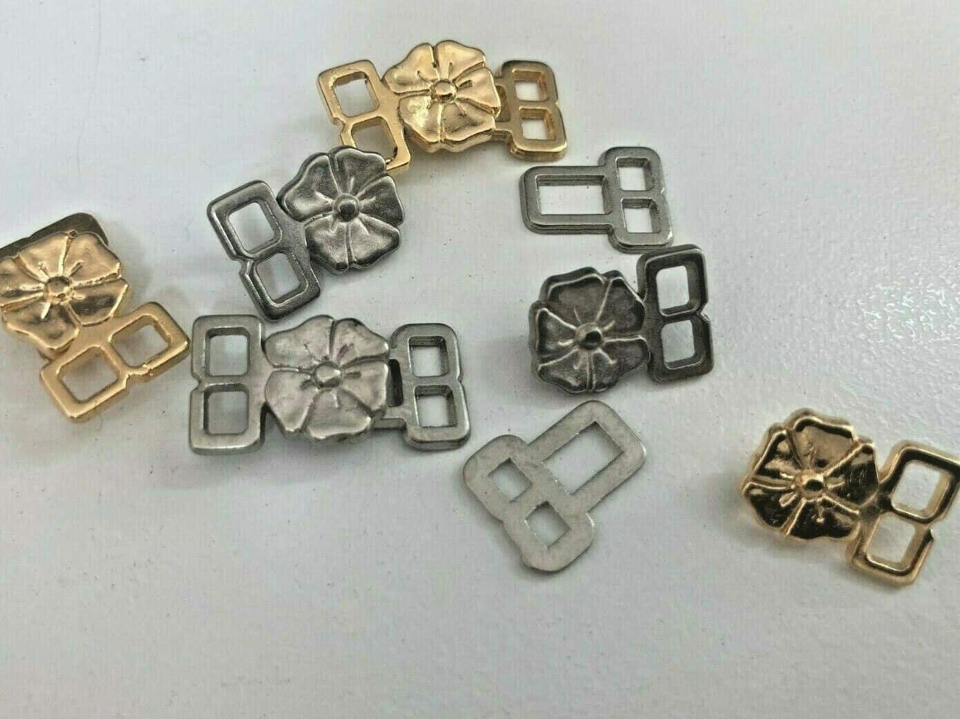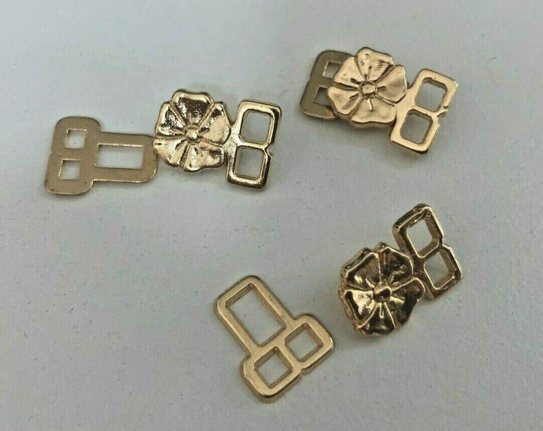 Add a touch of vintage charm and functionality to your garments with our Deco Fleur Brass / Nickel Metal Frog Fastening. This classic closure features a beautiful floral design and comes in both brass and nickel finishes, perfect for coats, jackets, and historical costumes.