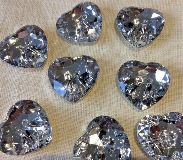 Large 2 Hole Crystal Sparkly Acrylic Crystal Heart Buttons – 29mm